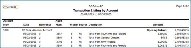 - The closing General Ledger balance will include all transactions i.e., payments and receipts processed within the date range.
