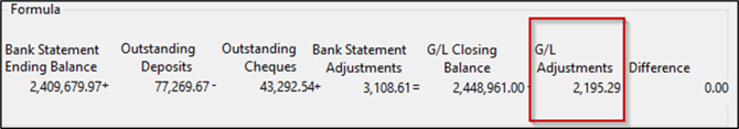 - The “G/L Adjustments” amount in the formula is a sum of the “Posting Adjustments (Recurring & New) + Worksheet Adjustments – G/L = G/L Adjustments amount”.