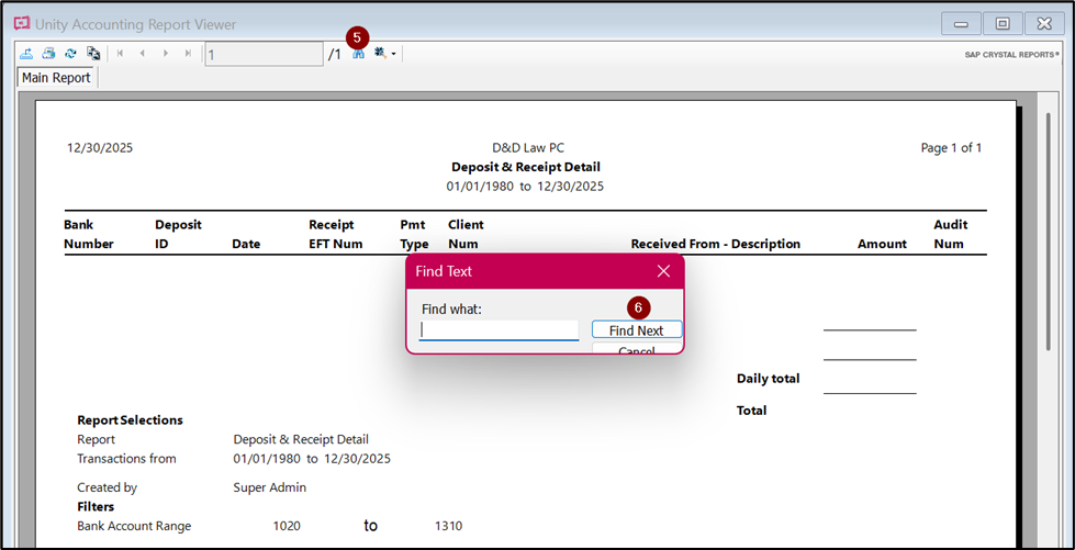 - Click on Deposit and Receipt Detail report.