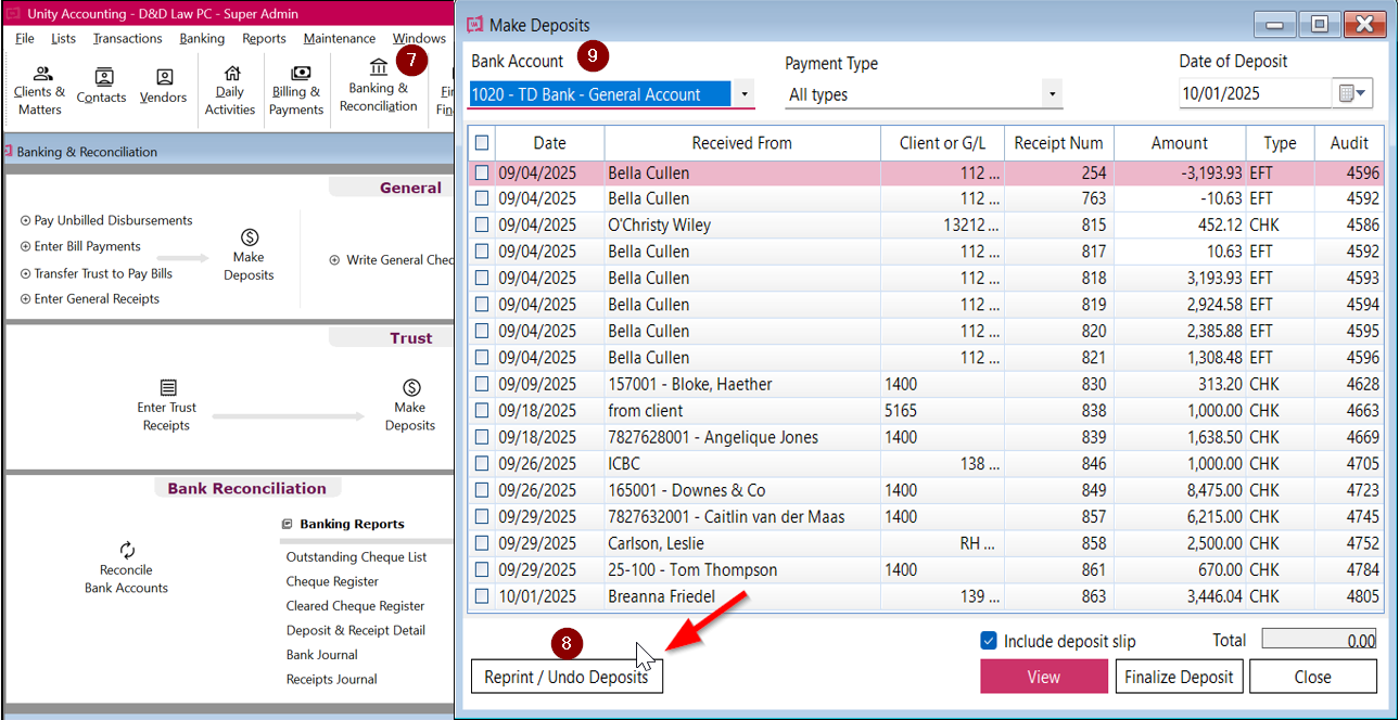 - Click on Reprint/Undo Deposits.